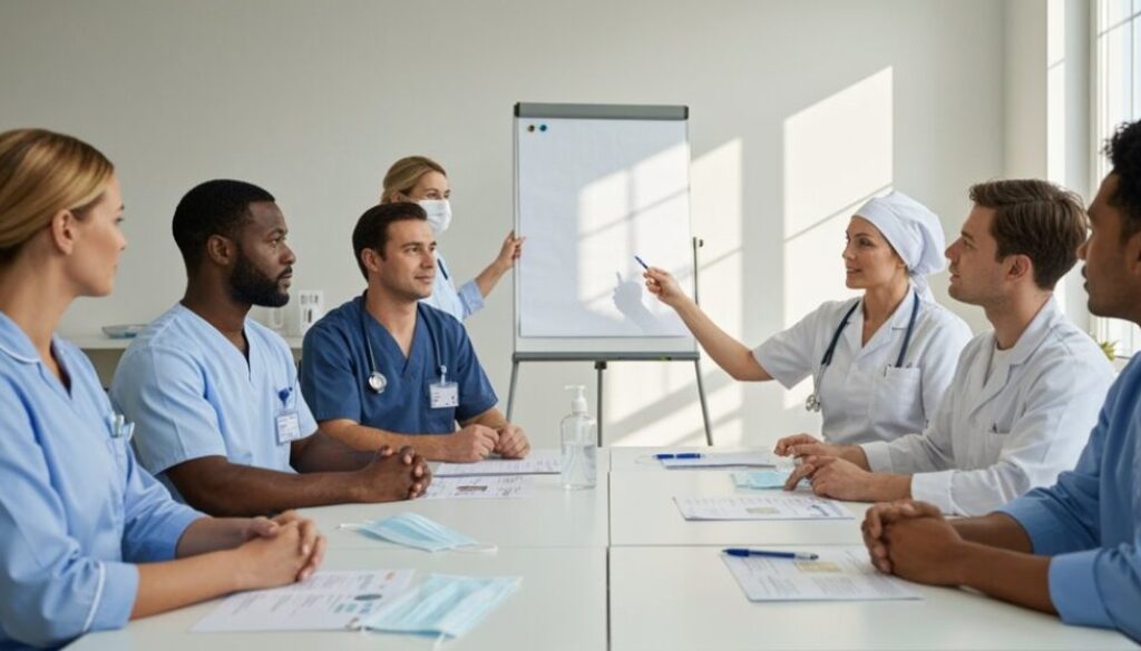 Häufig müssen Beschäftigte im Gesundheitswesen definierte Hygiene-Schulungsstandards nach dem IfSG erfüllen, die Inhalte, Häufigkeit und Dokumentationsanforderungen in Abhängigkeit von ihren Aufgaben festlegen. Die Rechtsvorschrift schreibt gezielte Unterweisungen zu Infektionsschutzmaßnahmen, Händehygiene, Gebrauch persönlicher Schutzausrüstung, Abfallentsorgung und Meldung meldepflichtiger Krankheiten vor. Die Schulungsfrequenz richtet sich nach dem Risiko der jeweiligen Tätigkeit: Erstunterweisung beim Eintritt, regelmäßige Auffrischungen und ereignisbedingte Aktualisierungen nach Ausbrüchen oder Zwischenfällen. Die Dokumentation muss Teilnehmendenidentität, behandelte Themen, Daten und Angaben zu den Qualifikationen der Lehrenden erfassen, um die Einhaltung nachzuweisen. Arbeitgeber sind verantwortlich für die Durchführung oder Beschaffung qualifizierter Unterweisungen und dafür, dass diese für alle Schichten und Vertragsformen zugänglich sind. Praktische Kompetenz und die Einhaltung der Maßnahmen werden betont; rein theoretisches Wissen ist nicht ausreichend. Vorgesetzte müssen die Umsetzung überwachen, die Schulungsergebnisse in das Qualitätsmanagement integrieren und Korrekturmaßnahmen an beobachteten Defiziten ausrichten. Dieser fokussierte Ansatz schützt die Patientensicherheit, verringert das Übertragungsrisiko in Versorgungseinrichtungen und bringt die berufliche Praxis in Einklang mit den gesetzlichen Verpflichtungen nach dem IfSG.