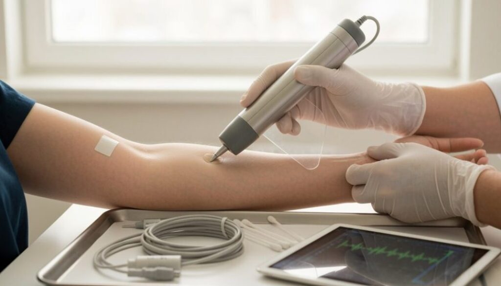 Implementieren Sie strenge Infektionsschutzmaßnahmen und eine angemessene Auswahl an persönlicher Schutzausrüstung (PSA), um die Übertragung von Krankheitserregern bei der Verwendung diagnostischer Geräte zu minimieren. Der Klinikmitarbeiter hält sich an die Händehygiene vor und nach dem Kontakt mit dem Gerät, wendet Atemhygiene in Patientennähe an und begrenzt Geräteoberflächen, die Körperflüssigkeiten ausgesetzt sind. Die Auswahl der PSA ist auf die jeweilige Aufgabe abgestimmt: Handschuhe bei Kontakt mit Schleimhäuten, Augenschutz bei Spritzgefährdung und Masken, wenn Aerosole erzeugt werden oder bei engem Gesicht-zu-Gesicht-Kontakt. Einwegbarrieren werden auf Sonden und Touch-Bedienelemente angebracht; wiederverwendbare Komponenten werden gemäß validierten Desinfektionsprotokollen gereinigt, die mit den Gerätewerkstoffen kompatibel sind. Die Umgebungspflege konzentriert sich auf stark berührte Flächen und Andockstationen von Geräten. Schulung und Kompetenzbewertung stellen korrektes An- und Ablegen sowie Entsorgen sicher, um Kreuzkontaminationen zu vermeiden. Die Dokumentation von Reinigungsintervallen und Vorfallmeldungen unterstützt die Qualitätsverbesserung und die Einhaltung von Vorschriften.